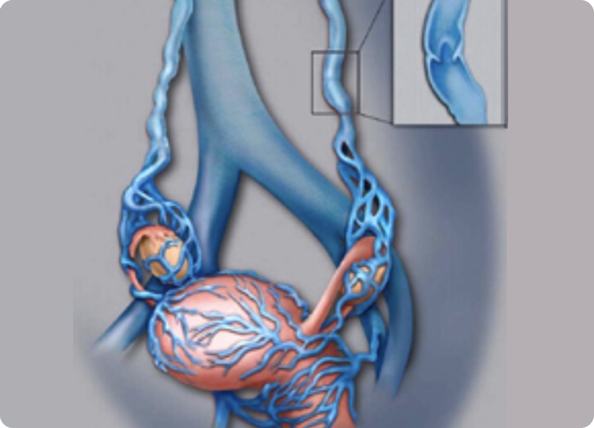 •Surgery: Ligation (suturing) of the ovarian vein is the most invasive option and may not completely treat the abnormal veins.